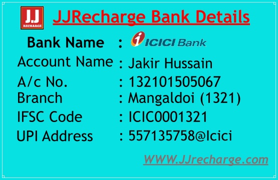 Ashal me JJ Recharge ek B2B service hai iska matlab business 2 business paise load karne ke liye JJ Recharge ke admin ke bank me paise transfer krna hai or wo apko wallet me paise denge. jab aap JJ Recharge ke users ban jayenge to apps ya website pe login karne ke bad apko Request Fund ka option dekhne ko milega usme Bank Details diya hai UPI, Bank a/c no. PhonePe no. jispe bhi apko ashan lage paise transfer krna hai.